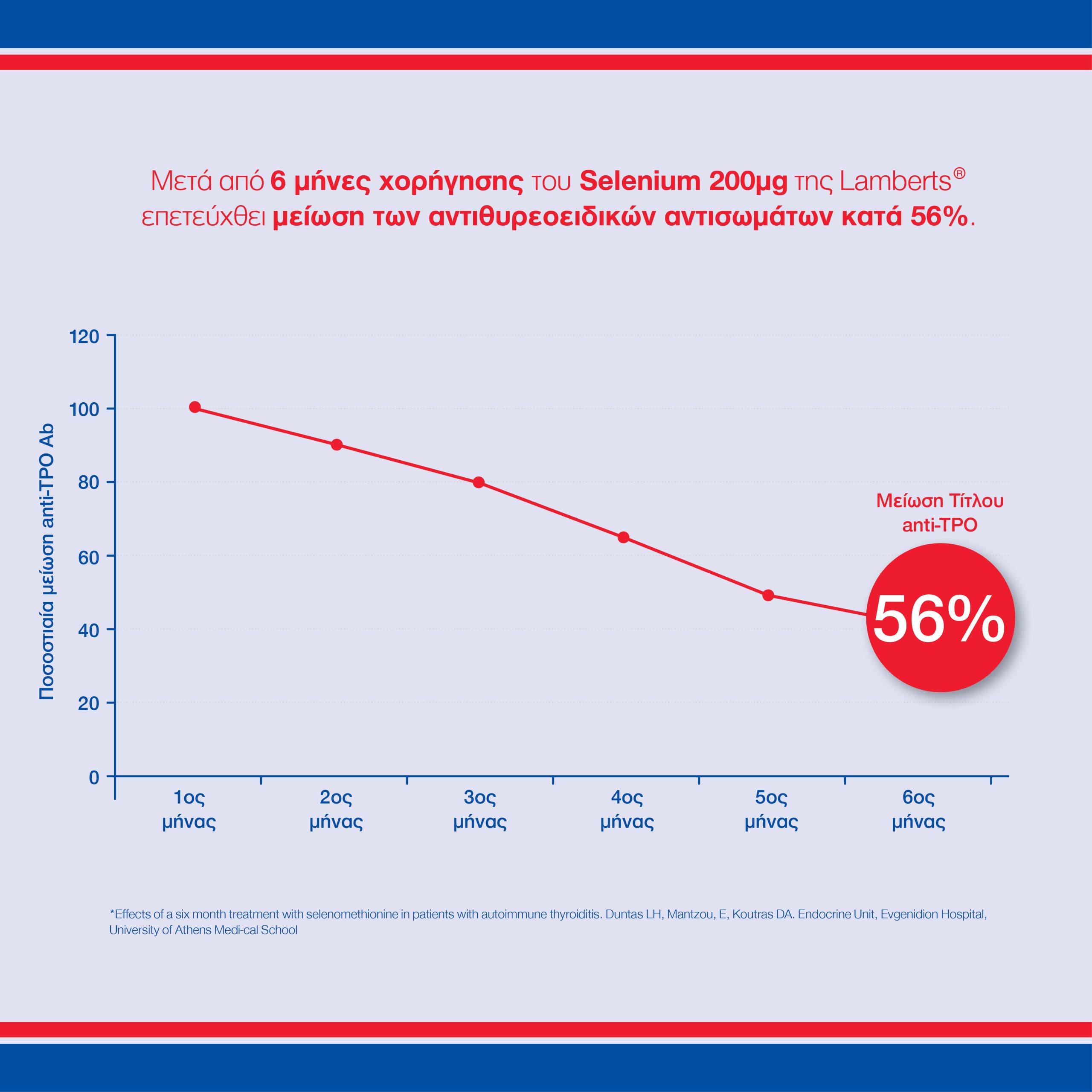 Το Selenium 200μg αποτελεί ένα κλινικό ελεγμένο σκεύασμα, καθώς με αυτό έχει διεξαχθεί κλινική μελέτη σε πάσχοντες από αυτοάνοση θυρεοειδίτιδα. Στη μελέτη αυτή, η χορήγηση του Selenium 200μg για 6 μήνες συνοδεύτηκε από μείωση των αντιθυρεοειδικών αντισωμάτων κατά 56% (1)